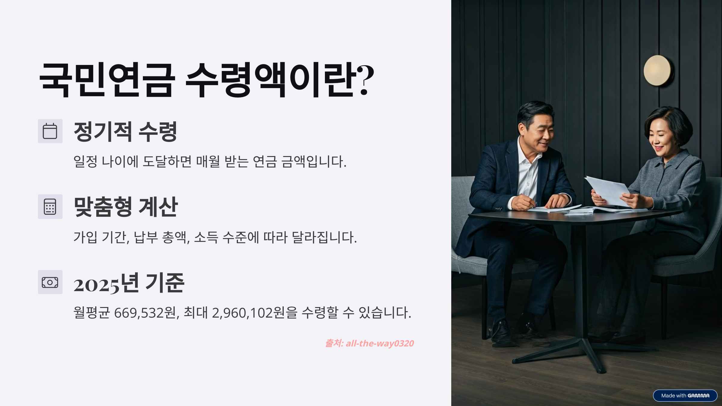 - 실제 수령액은 변동 가능: 경제 상황, 정책 변경 등에 따라 예측치와 다를 수 있습니다.