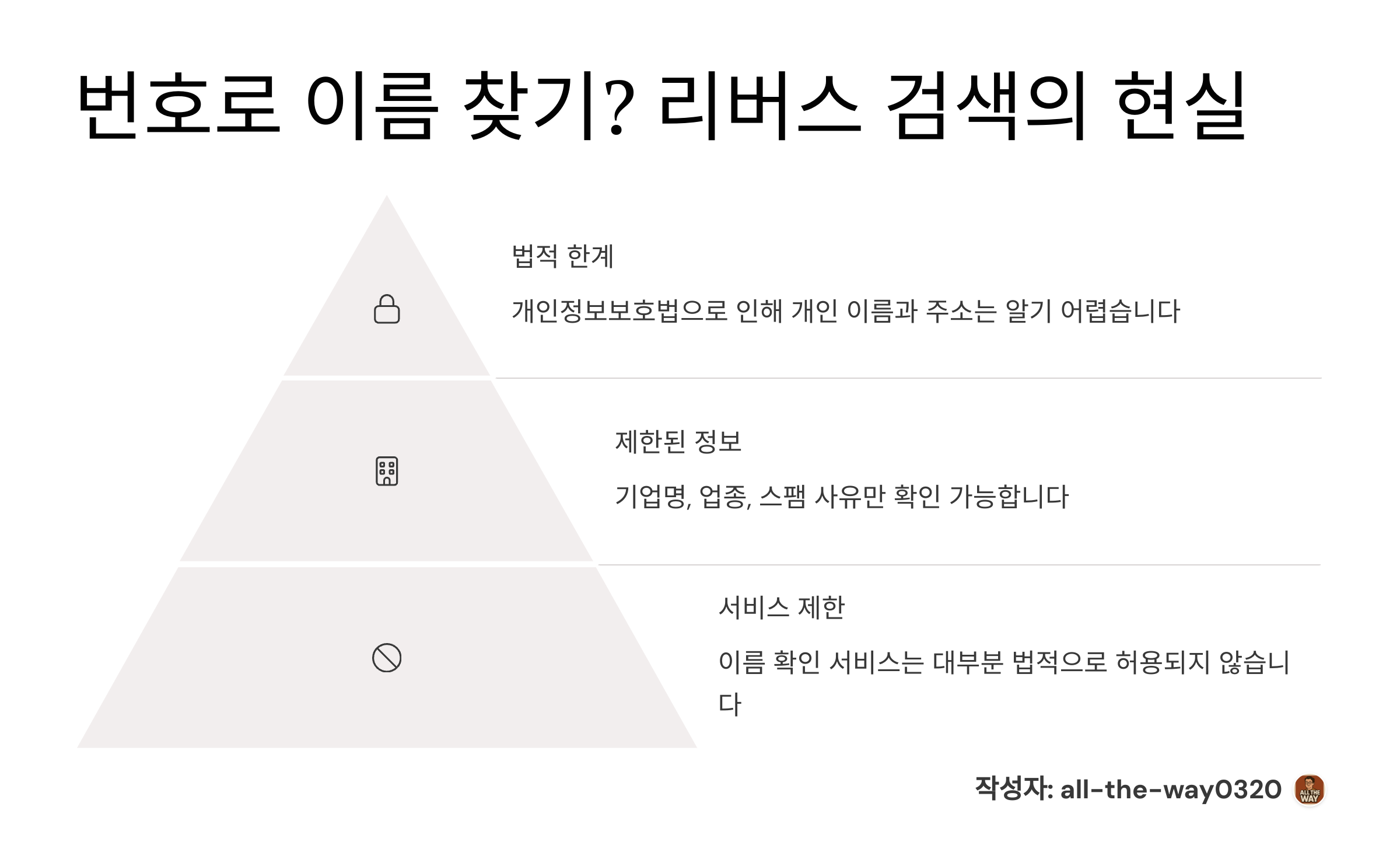 "이 번호, 대체 누굴까?"라는 마음으로 번호를 검색하면 이름까지 나올 거라고 기대하실 수 있어요. 하지만 현실은 조금 달라요. 국내에서는 개인정보 보호법상 이름이나 주소 같은 민감 정보는 공개되지 않거든요. 해외에서는 리버스 전화 검색(Reverse Lookup) 서비스를 통해 이름이 노출되는 경우도 있지만, 한국은 그게 거의 불가능합니다. 단, 번호와 함께 사용자들이 남긴 ‘댓글’이나 ‘이력’을 통해 대략적인 정체는 추측할 수 있어요. 그래서 ‘번호+후기’ 조합 검색이 가장 현실적이죠.