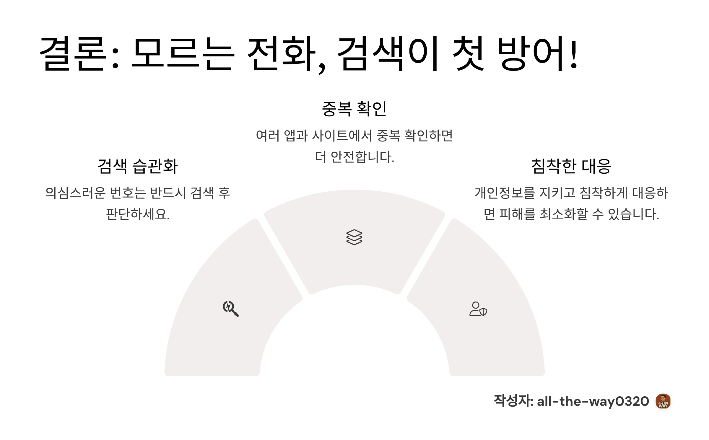 | 공식 앱 우선 사용 | 후후, T전화 등 공신력 있는 앱을 통해 조회 |