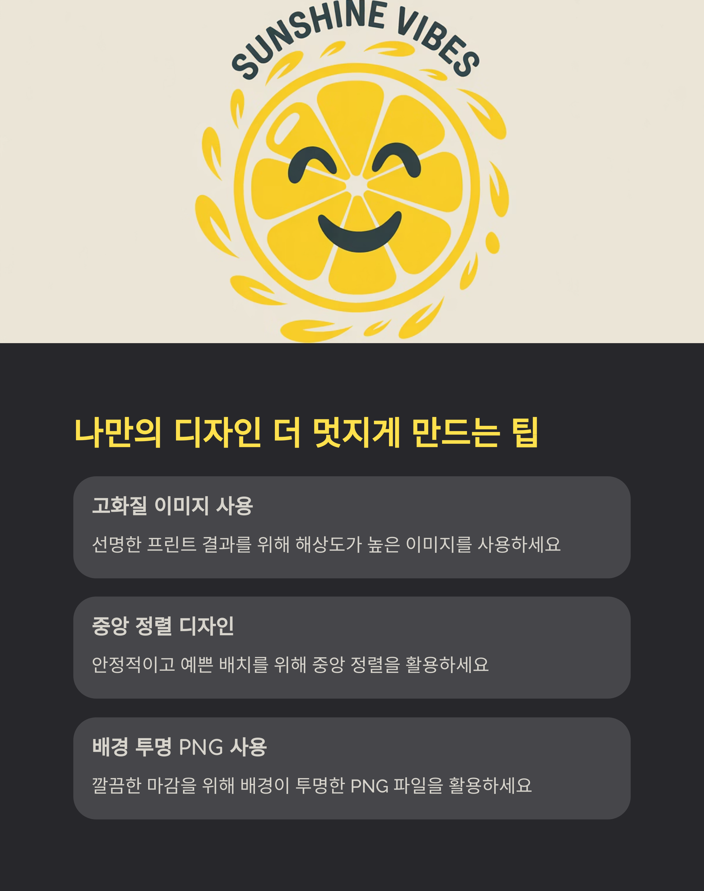 - 배경 투명 PNG 사용: 깔끔한 마감