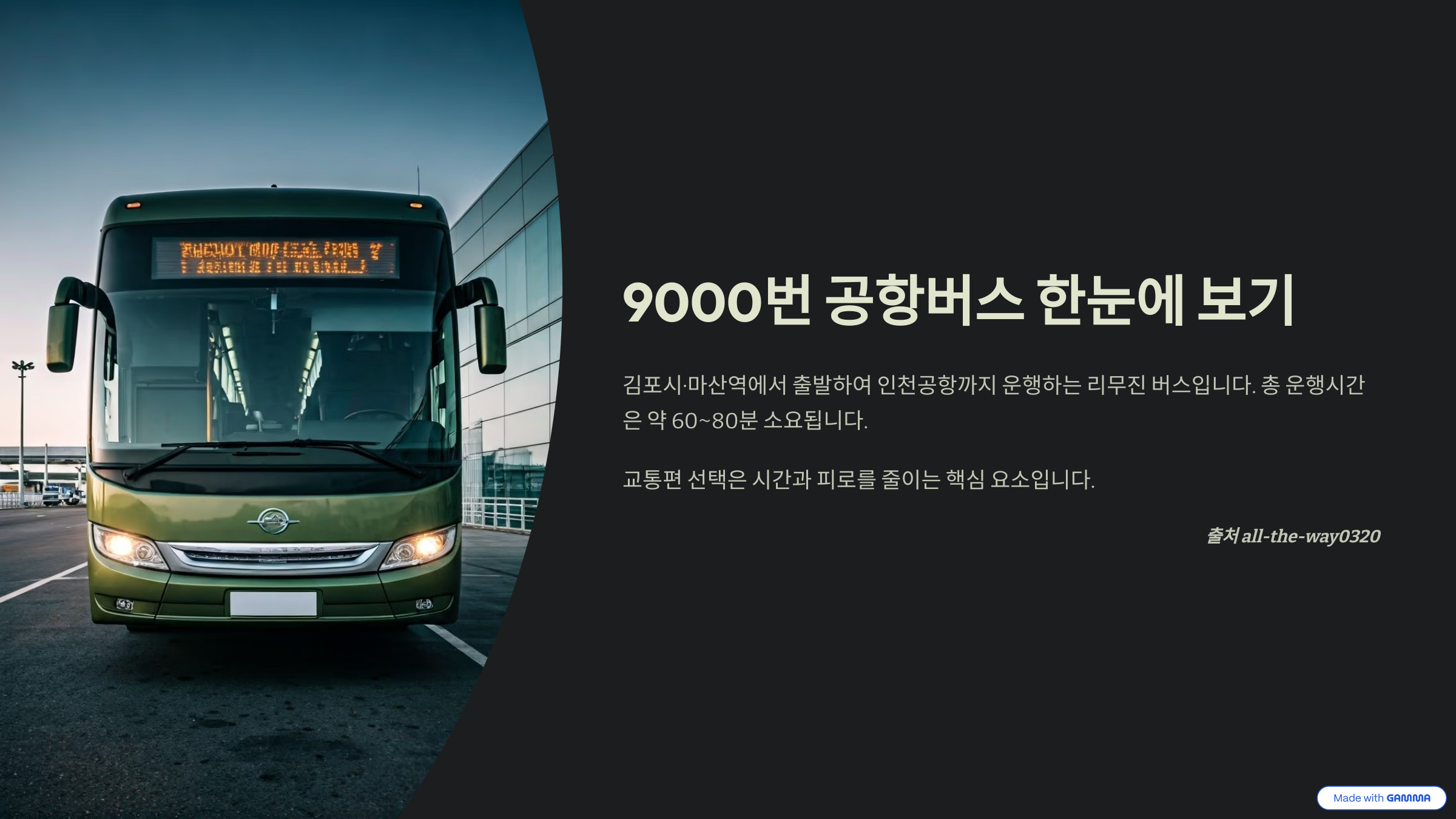 정시성과 편의성을 모두 갖춘 9000번 공항버스를 통해 쾌적하고 여유 있는 공항 이동을 경험해보세요. 앱으로 실시간 확인은 필수입니다!