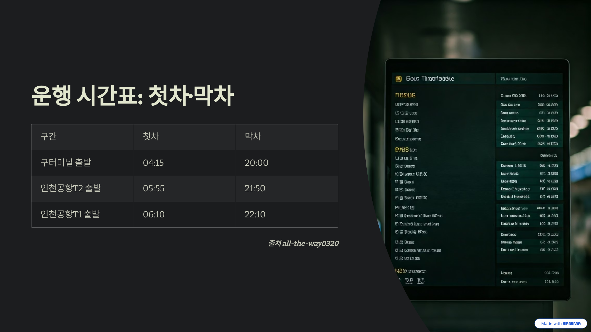 3. 운행 시간표 (첫차/막차 기준)